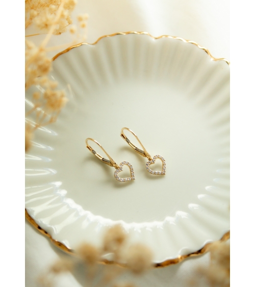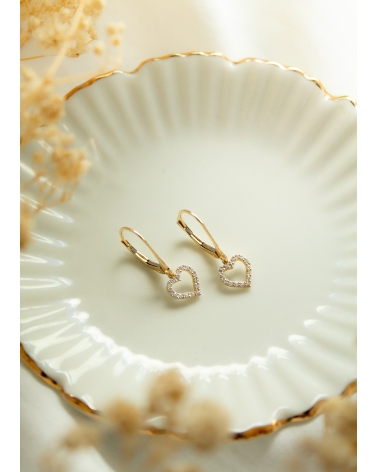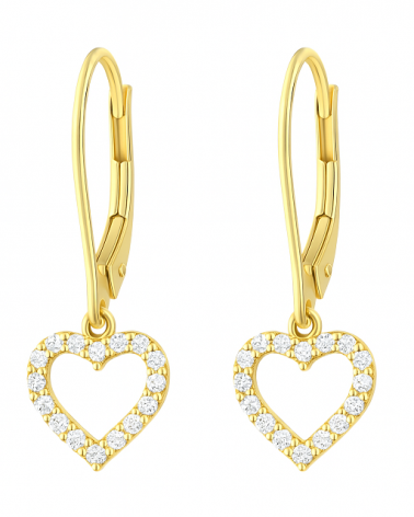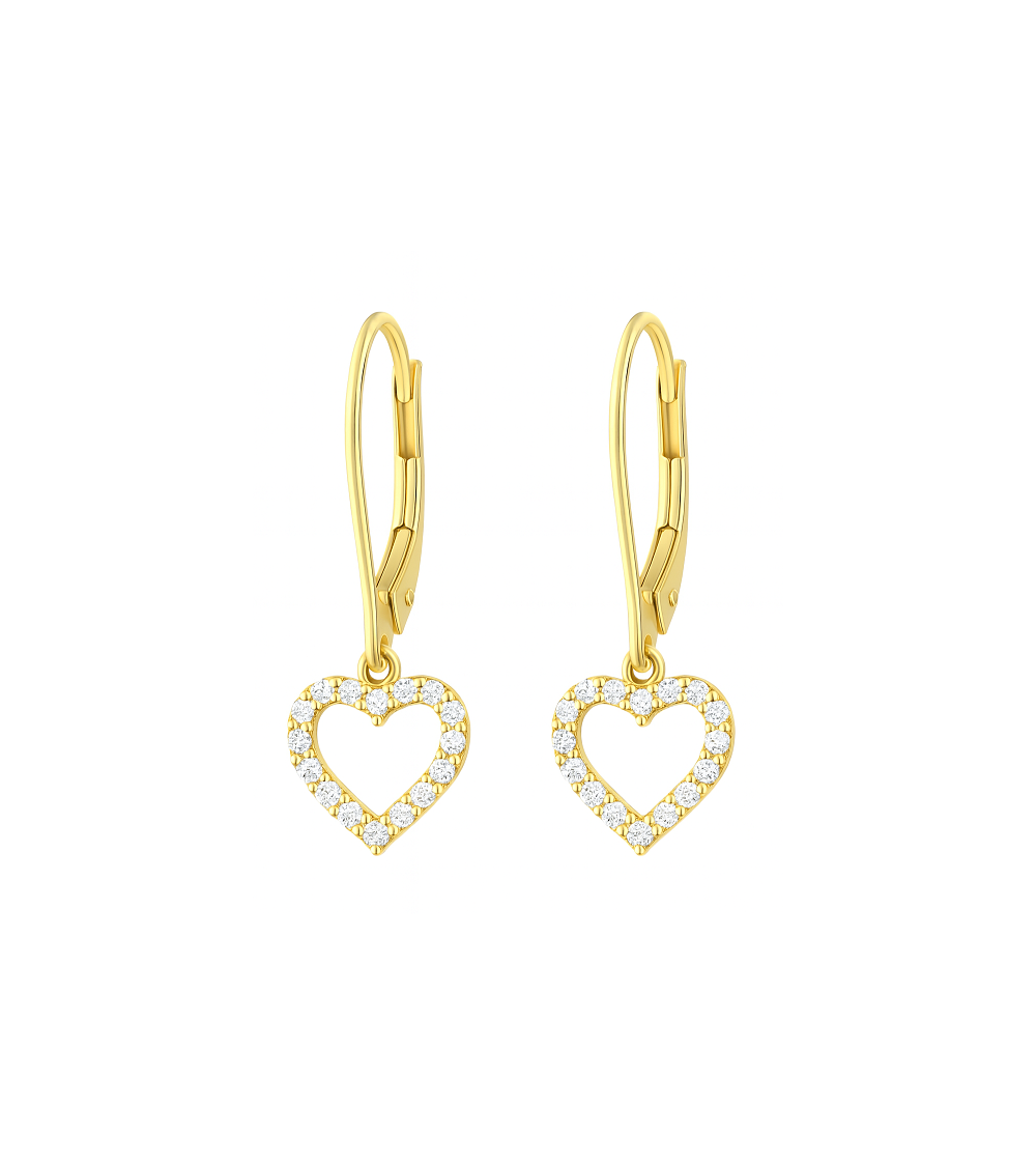 ZŁOTE WISZĄCE KOLCZYKI Z SERDUSZKAMI I CYRKONIAMI